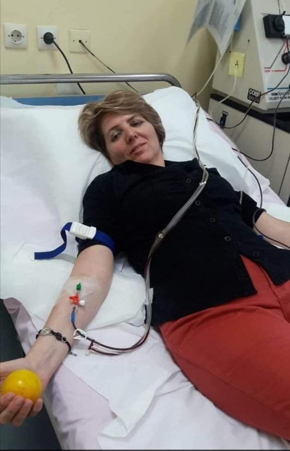 Στο Νοσοκομείο, όπου πήγε να δώσει αιμοποιητικά κύτταρα, τη συνόδευσαν τα παιδιά της για να δουν από κοντά και να σιγουρευτούν ότι δεν είναι κάτι επώδυνο, επικίνδυνο και δύσκολο. «Τα έβλεπα που κοιτούσαν με περιέργεια τα μηχανήματα που φυγοκέντριζαν το αίμα που έφευγε από το χέρι μου και αφού κρατούσαν μέσα σε σακουλάκι μόνο τα απαραίτητα για τον λήπτη κύτταρα επέστρεφαν τα υπόλοιπα στοιχεία του αίματος από το άλλο χέρι στον οργανισμό μου. Με ρωτούσαν συνέχεια πώς νιώθω, αν πονάω. Ήμουν μια χαρά. Χαρούμενη και συγκινημένη. Ούτε λόγος ότι εκείνη την μέρα θα πήγαιναν στο σχολείο τους. Ήταν πολύ ενθουσιασμένα που η μαμά τους θα έδινε μόσχευμα για να σωθεί μια ανθρώπινη ζωή.