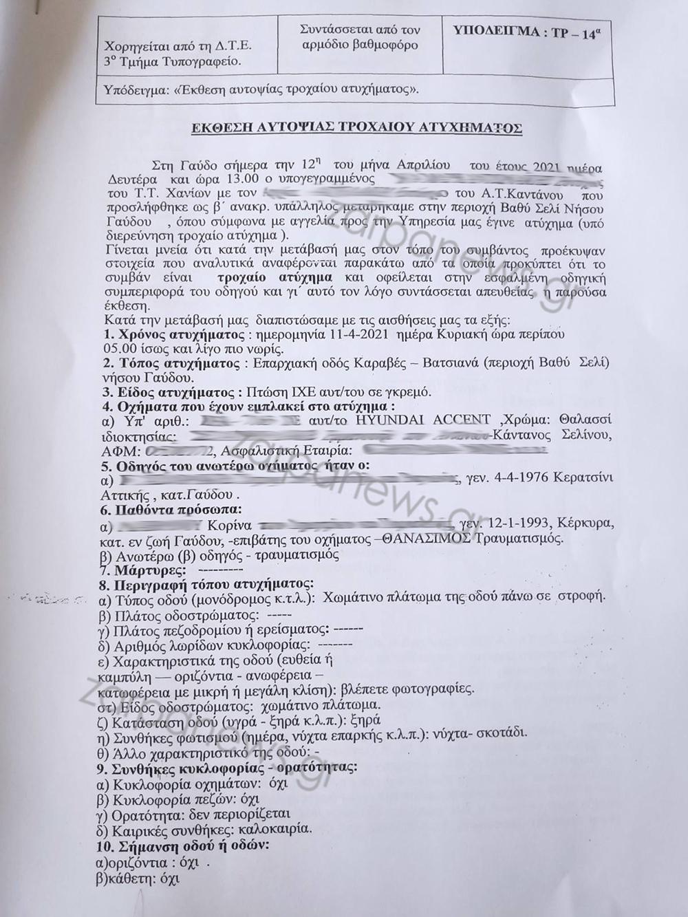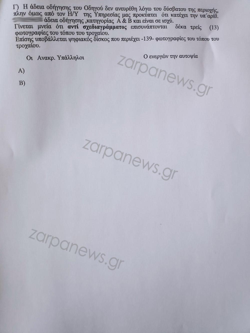 Δείτε την έκθεση της αυτοψίας του τροχαίου: