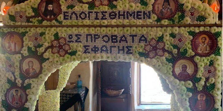 Το ταπεινό Μοναστήρι μας κάτω από την ηγετική φυσιογνωμία του θρυλικού Ηγουμένου του , αγωνιστή – οπλαρχηγού της επανάστασης στη Κρήτη αρχιμαδρίτου Νεοφύτου Πεδιώτη με την ισχνή φωνή του επιθυμεί να τονίσει και να παρουσιάσει αυτόν τον ρόλο της μάνας Εκκλησίας που παρασιωπήθηκε. Έτσι αποφάσισε το φετινό θέμα του κουβουκλίου του επιταφίου που τίθεται το νεκρό σώμα του Ιησού εκτός από τα άνθη να το στολίσει και μα τα εύοσμα άνθη της Πίστεως μας , τους Αγίους Νεομάρτυρες οι οποίοι προκειμένου να μην αρνηθούν την Ρωμέϊκη ταυτότητα τους προτίμησαν να χύσουν το αίμα τους και ανταμείφθηκαν με το αμαράντινο Στέφανο της Δόξας και Αγιότητας. Επιλέξαμε ενδεικτικά Αγίους Νεομάρτυρες από διάφορα μέρη της Πατρίδας μας τόσο κληρικούς όσο και λαϊκούς όπως : Γρηγόριος ο Ε ´ , Κύριλλος Λούκαρης , Γεράσιμος Κρήτης , Κυπριανός Κύπρου , Κοσμάς Αιτωλός , Φιλοθέη Αθηναία , Νικόλαος Καρπενησίου , Γεώργιος Ιωαννίνων , Λυγερή Χιοπολίτης, 4 Μάρτυρες Ρεθύμνου , Ιωάννης Κόνιτσας , Τριαντάφυλλος Ζαγοράς Πηλίου , Πολύδωρος Κύπρου ,Ιωάννης Τουρκολέκας Αρκαδίας , Κυράννα Θεσσαλονίκης , Μαρία Μεθυμοπούλα Φουρνής Μεραμβέλλου , Εφραίμ Νέας Μάκρης , Ραφαήλ Νικόλαος Ειρήνη Λέσβου , Αργυρή Προύσας , Ακυλίνα Θεσσαλονίκης.