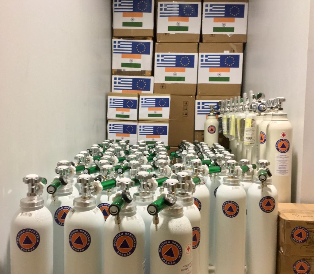 Συγκεκριμένα, η ελληνική κυβέρνηση ανταποκρίνεται άμεσα στο αίτημα των ινδικών αρχών και μέσω του Ευρωπαϊκού Μηχανισμού Πολιτικής Προστασίας, έχει έτοιμες προς αποστολή 90 φιάλες οξυγόνου συνολικής χωρητικότητας 440 λίτρων, καθώς και υγειονομικό υλικό (μάσκες, γάντια και λοιπά μέσα αυτοπροστασίας).