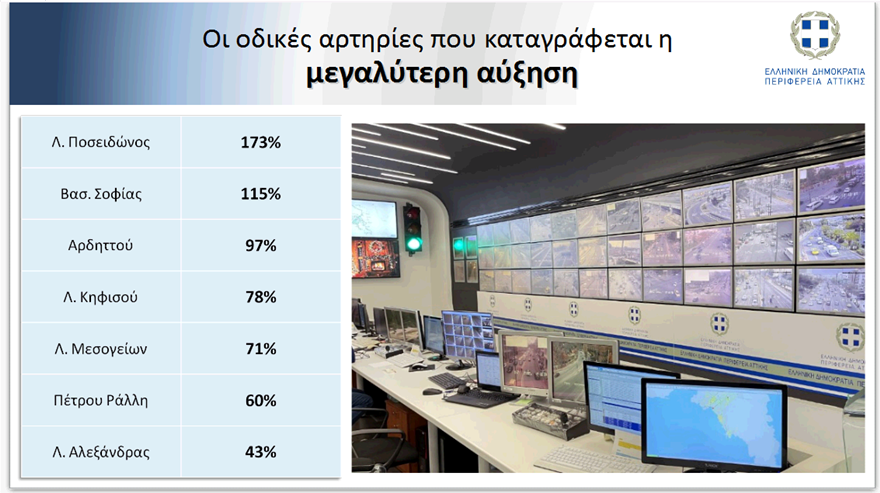 Σύμφωνα με τα νέα στοιχεία που παρουσίασε το Κέντρο Διαχείρισης της Κυκλοφορίας της Περιφέρειας Αττικής, από τη Μεγάλη Δευτέρα έως τη Μεγάλη Τετάρτη, η μεγαλύτερη αύξηση καταγράφηκε στη Λεωφόρο Ποσειδώνος, η οποία ξεπέρασε το 170%, στη Βασιλίσσης Σοφίας, όπου έφτασε το 115%, στην Αρδηττού σε ποσοστό 97%, αλλά και στις Λεωφόρους Κηφισού και Μεσογείων που ή αύξηση ξεπέρασε το 70%.