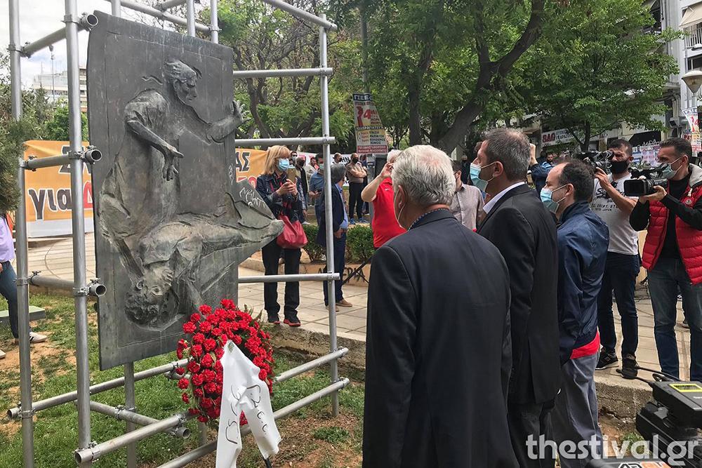 Ακολούθησαν καταθέσεις στεφανιών εκ μέρους της ΓΣΕΕ, του ΕΚΘ, συνδικαλιστικών παρατάξεων και Δήμων. Το ΕΚΘ έχει κηρύξει 24ωρη απεργία για σήμερα, στην οποία συμμετέχουν και οι εργαζόμενοι στις αστικές συγκοινωνίες και τα λεωφορεία του ΟΑΣΘ κινούνται μόνο με το προσωπικό ασφαλείας.