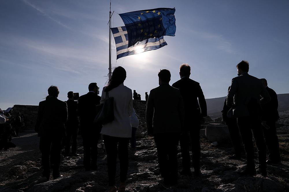 «Η Σημαία της Ευρωπαϊκής Ένωσης κυματίζει και η «Ωδή στη χαρά» ανακρούεται στη Σκεπή του Ευρωπαϊκού πολιτισμού… στην Ακρόπολη των Αθηνών» αναφέρει σε αντίστοιχη ανάρτηση στο twitter, η Αντιπροσωπεία της Ευρωπαϊκής Επιτροπής στην Ελλάδα.