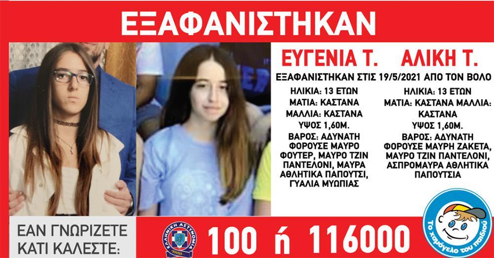 Σύμφωνα με την ανακοίνωση από το Χαμόγελο του Παιδιού πρόκειται για τις Ευγενία Τ. και Αλίκη Τ.