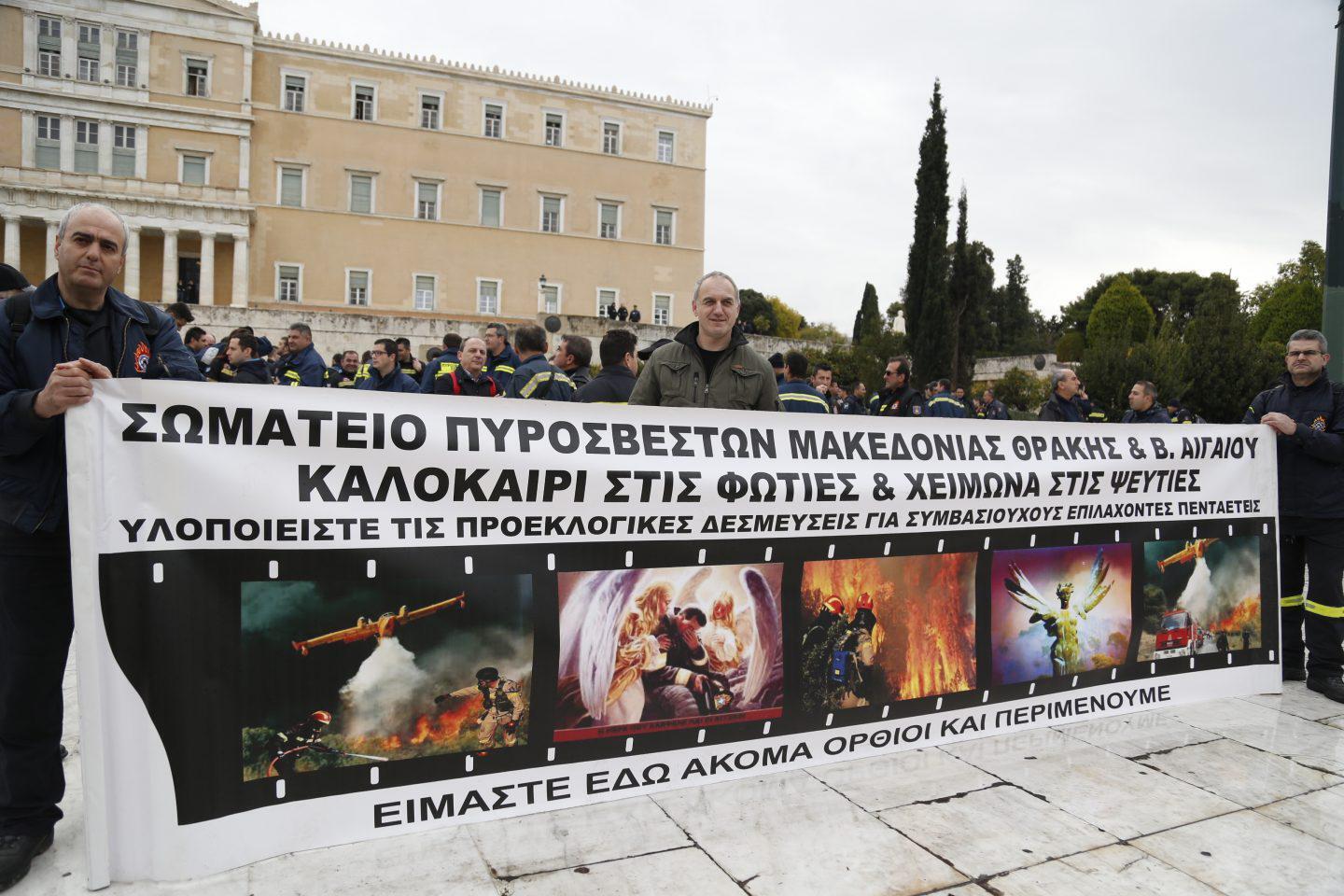 Οι διαμαρτυρόμενοι ζητούν τη μονιμοποίησή τους ή την ανανέωση των συμβάσεών τους. Η θητεία των 4.000 πυροσβεστών, που προσλήφθηκαν στις 10 Φεβρουαρίου 2012, λήγει αύριο κι όπως τονίζουν κινδυνεύουν να βρεθούν στον δρόμο, εάν δεν μονιμοποιηθούν όσοι το δικαιούνται, σύμφωνα με τον νόμο ή δεν ανανεωθούν οι συμβάσεις των υπολοίπων.