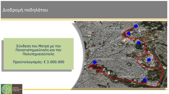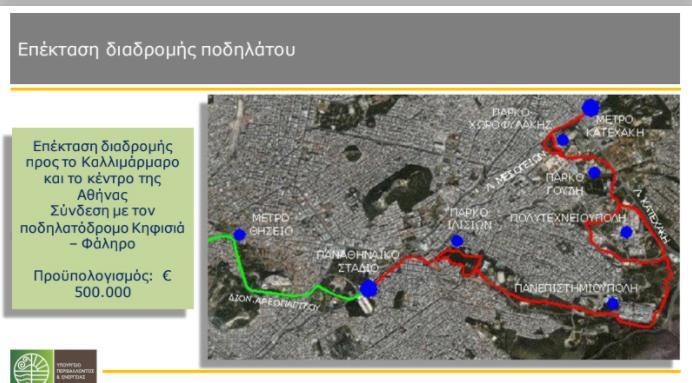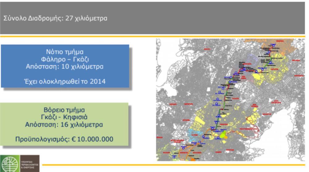 Το ολοκληρωμένο σχέδιο που παρουσιάστηκε σήμερα θα κατασκευαστεί με άξονες τη φύση, τον πολιτισμό, την άθληση και την ψυχαγωγία. Εκτός από πεζόδρομο και ποδηλατόδρομο, περιλαμβάνει χώρους άθλησης, χώρους για τα παιδιά και χώρους αναψυχής. Παράλληλα, σε όλη την Αττική θα κατασκευαστεί Μητροπολιτικό Δίκτυο Ποδηλάτου, συνολικού μήκους άνω των 100 χιλιομέτρων.