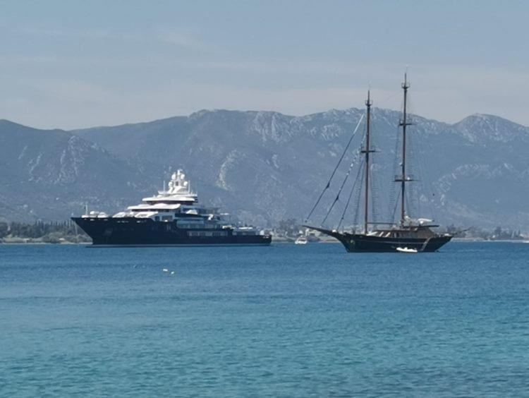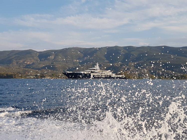 Πρόκειται για ένα εντυπωσιακό σκάφος 116 μέτρων εξοπλισμένο με ελικόπτερο – το οποίο πραγματοποιεί πτήσεις στον ουρανό του Πόρου – υποστηρικτικό σκάφος 24 μέτρων, τετρακίνητο όχημα και μοτοσικλέτα, όλα προστατευμένα σε υπόστεγα!