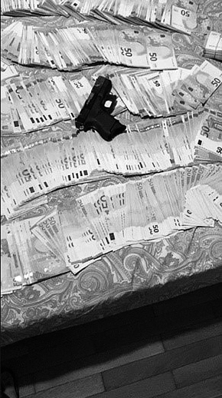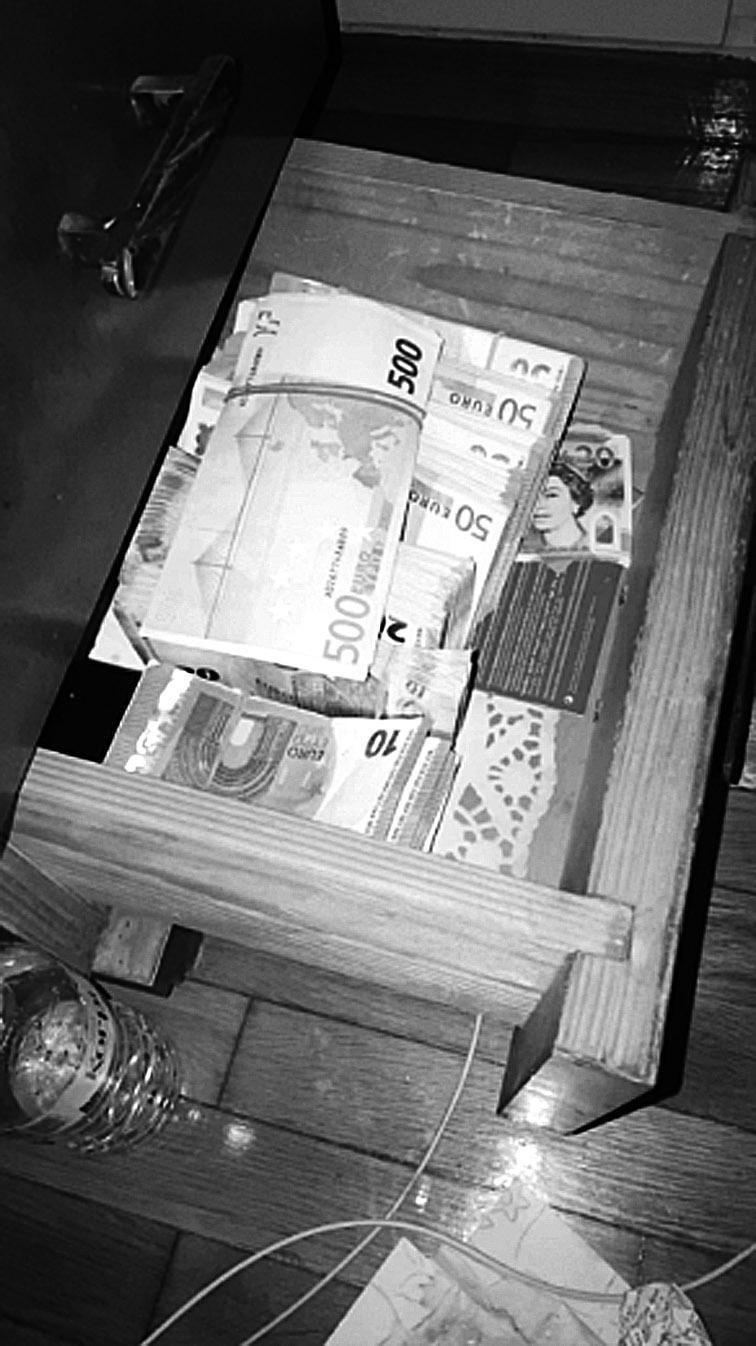 καυσίμων στην περιοχή Nieuwegein της Ολλανδίας. Σε άλλες φωτογραφίες απεικονίζονταν πολλά χρήματα πάνω σε… κρεβάτια και συρτάρια. Βρέθηκε χειρόγραφο σημείωμα με τίτλο «ΝΧΗΟ ΑKAUNT», δηλαδή λογαριασμός, και σημειωμένα χρηματικά ποσά δίπλα σε ονόματα: Rino 16.960 euro, Landi 3.000 euro κ.ο.κ.