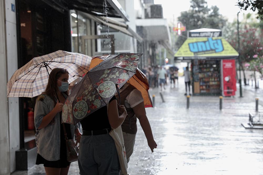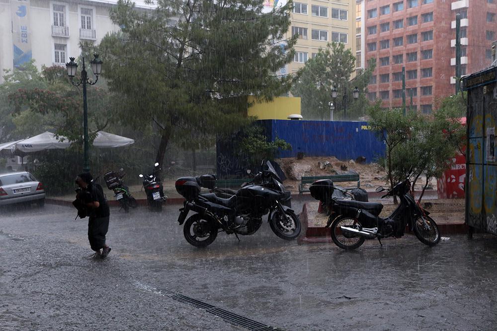 Η βροχή συνοδεύτηκε από έντονη κεραυνική δραστηριότητα, ενώ σε κάποιες περιοχές της Αττικής έχει πέσει μέχρι και χαλάζι.