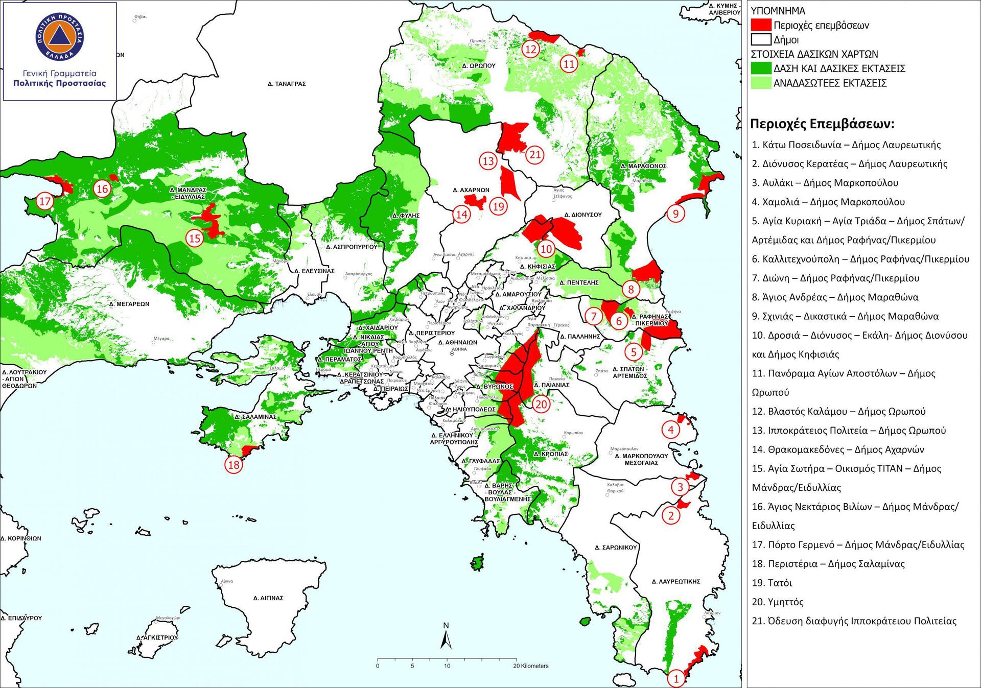 H επιχείρηση αφορά σε εργασίες καθαρισμών, απομάκρυνση εύφλεκτης ύλης, καθώς και διάνοιξης και συντήρησης δρόμων πρόσβασης για τα οχήματα πυρόσβεσης σε 18 περιοχές της Αττικής: Κάτω Ποσειδωνία και Διόνυσος Κερατέας του Δήμου Λαυρεωτικής, Αυλάκι και Χαμολιά του Δήμου Μαρκοπούλου, Αγία Κυριακή- Αγία Τριάδα του Δήμου Σπάτων/Αρτέμιδας και του Δήμου Ραφήνας/Πικερμίου, όπως και Διώνη, Καλλιτεχνούπολη του Δήμου Ραφήνας/Πικερμίου, Άγιος Ανδρέας και Σχοινιάς- Δικαστικά του Δήμου Μαραθώνα, Δροσιά- Διόνυσος- Εκάλη του Δήμου Διονύσου και Δήμου Κηφισιάς, Πανόραμα Αγίων Αποστόλων, Βλαστός Καλάμου, Ιπποκράτειος Πολιτεία του Δήμου Ωρωπού, Θρακομακεδόνες του Δήμου Αχαρνών, Αγία Σωτηρία, Οικισμός ΤΙΤΑΝ, Πόρτο Γερμενό και Άγιος Νεκτάριος Βιλίων του Δήμου Μάνδρας/Ειδυλλίας, καθώς και Περιστέρια του Δήμου Σαλαμίνας. Σε αυτές προστέθηκαν τρεις νέες περιοχές εντός Αττικής: το Τατόι, (είχε να καθαριστεί 20 χρόνια είπε ο κ. Χαρδαλιάς), ο Υμηττός και η Ιπποκράτειος Πολιτεία και άλλες τρεις στην υπόλοιπη Ελλάδα, (στο Σέιχ Σου, στην Αρχαία Ολυμπία και σε συνεργασία με την περιφέρεια στην Χαλκιδική).