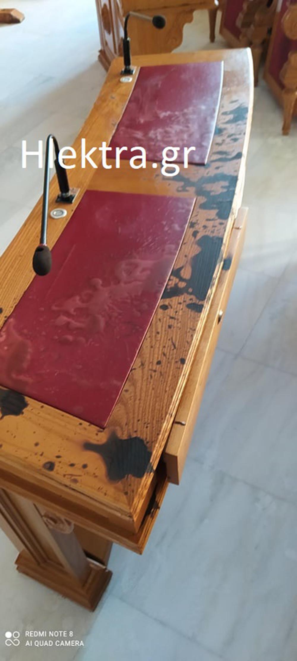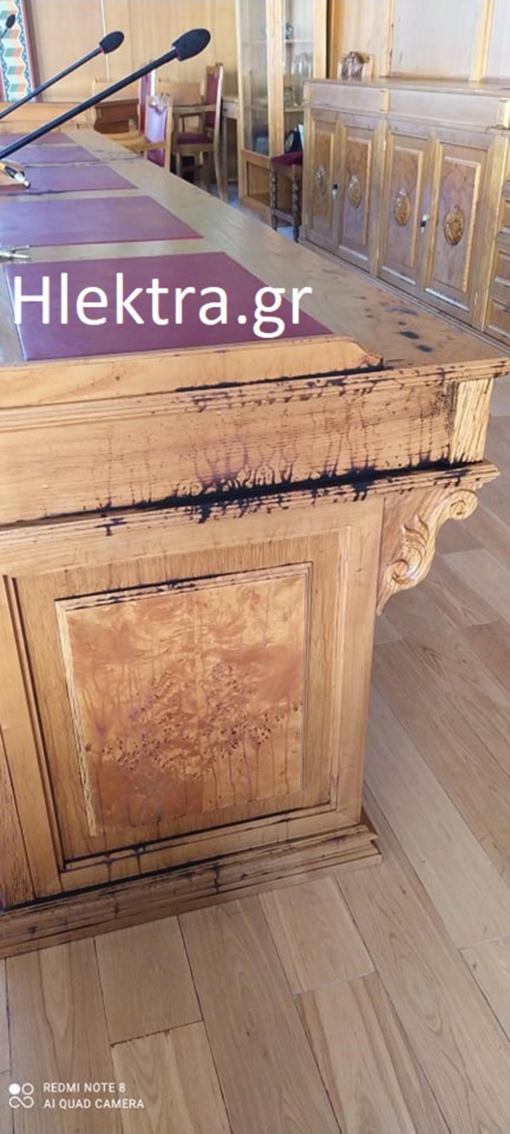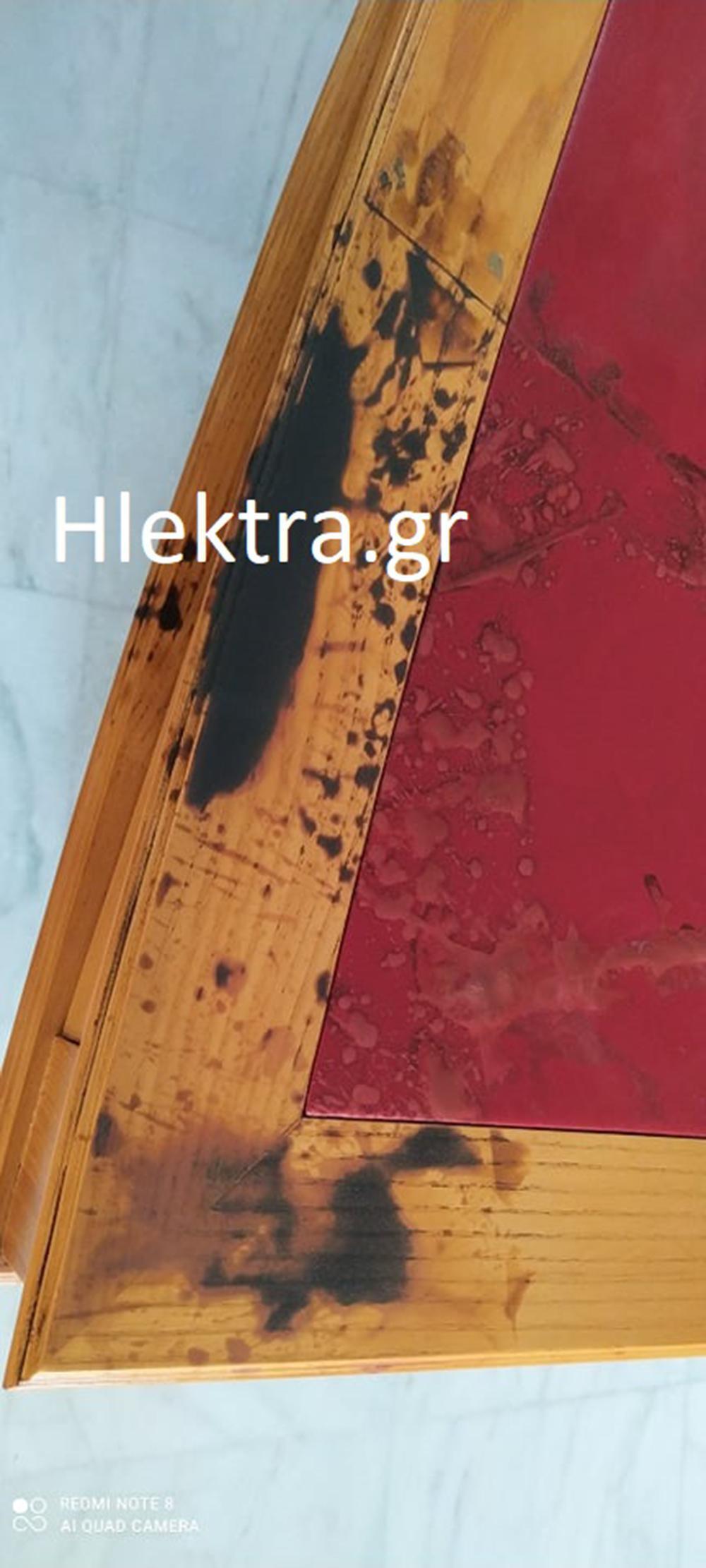 Οι φωτογραφίες που δημοσιεύει αποκλειστικά το hlektra.gr είναι χαρακτηριστικές και δείχνουν την ζημιά που προκάλεσε το υγρό ακόμα και στα έπιπλα που βρίσκονται στον χώρο αφήνοντας πάνω σημάδια καύσης.