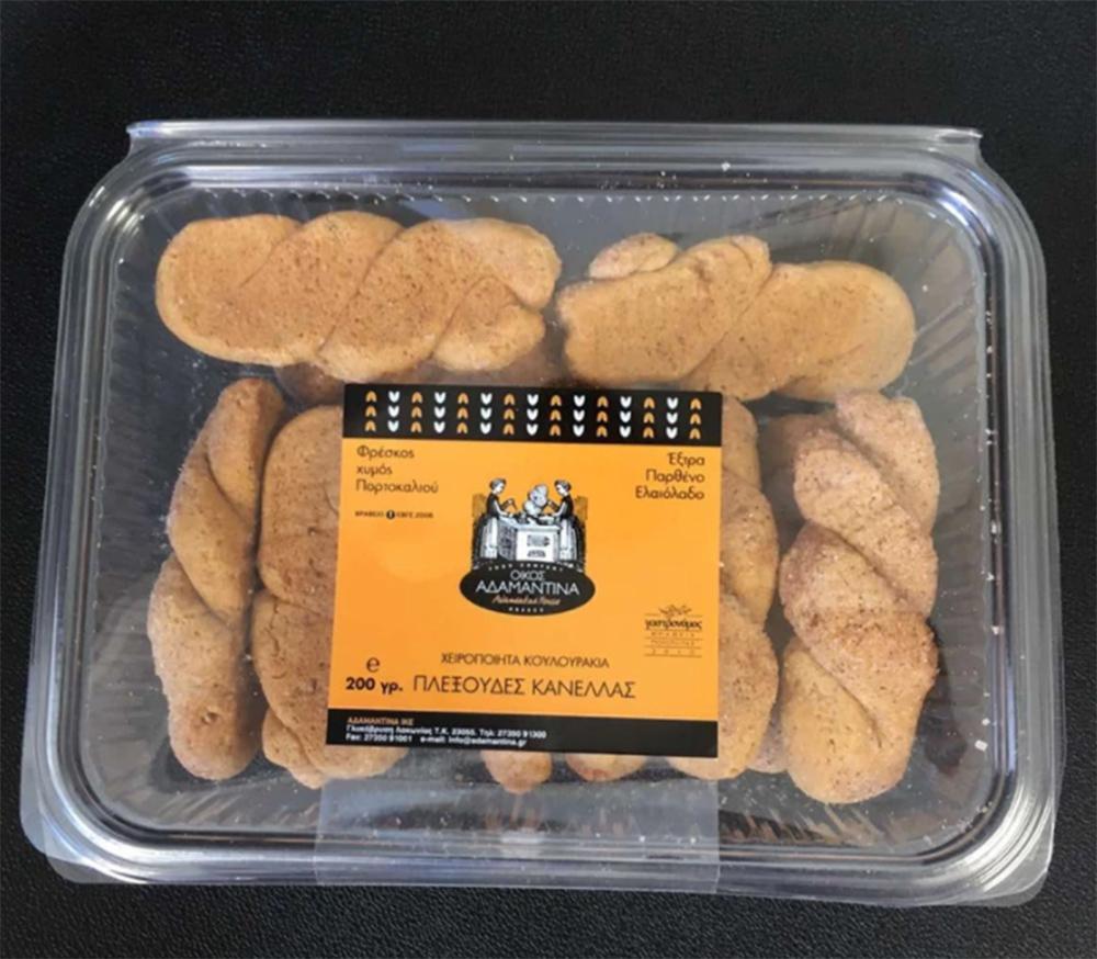 - «ΧΕΙΡΟΠΟΙΗΤΑ ΚΟΥΛΟΥΡΑΚΙΑ ΠΛΕΞΟΥΔΕΣ ΚΑΝΕΛΑΣ», με την επωνυμία «ΟΙΚΟΣ ΑΔΑΜΑΝΤΙΝΑ», με ημερομηνία ελάχιστης διατηρησιμότητας 20-01-2022 και αριθμό παρτίδας Α.Π. 7135