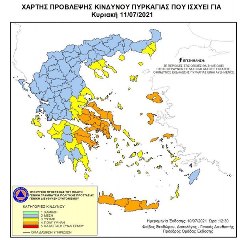 Συγκεκριμένα πολύ υψηλός κίνδυνος πυρκαγιάς (κατηγορία κινδύνου 4) προβλέπεται για τις εξής περιοχές: