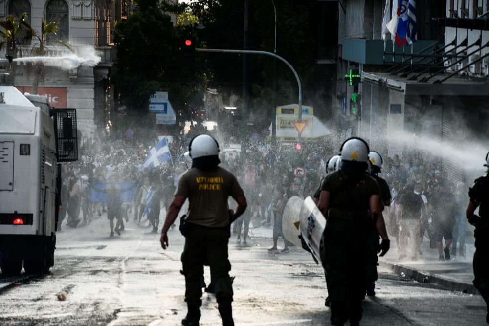 Οι αστυνομικές δυνάμεις προχώρησαν στην απώθηση των συγκεντρωμένων, με ρίψεις νερού και περιορισμένη χρήση δακρυγόνων.