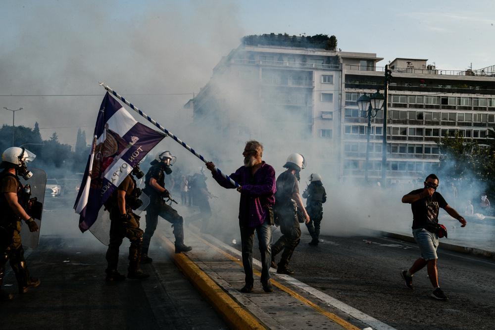 Όσον αφορά τη συγκέντρωση στο Σύνταγμα, η ΓΑΔΑ σημειώνει στην ανακοίνωσή της: «Στις 18:00, μετά από κάλεσμα μέσω σελίδων κοινωνικής δικτύωσης διαφόρων οργανώσεων, συλλόγων και σωματείων για συγκέντρωση, με κεντρικό σύνθημα “όλοι στον αγώνα για ελευθερία και αξιοπρέπεια- όχι στα δικτατορικά μέτρα της κυβέρνησης-ενάντια στο διαχωρισμό των πολιτών”, πραγματοποιήθηκε συνάθροιση περίπου 3.500 ατόμων στο χώρο της Πλατείας Συντάγματος.