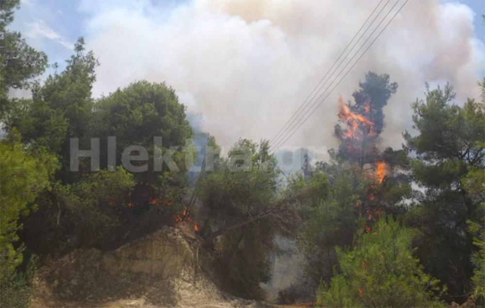 Σύμφωνα με την Πυροσβεστική, η φωτιά δεν απειλεί κατοικημένες περιοχές.