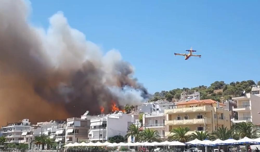 Στην περιοχή πνέουν ισχυροί άνεμοι, που προκαλούν ανησυχία, καθώς η φωτιά ξέσπασε κοντά σε κατοικημένη περιοχή.