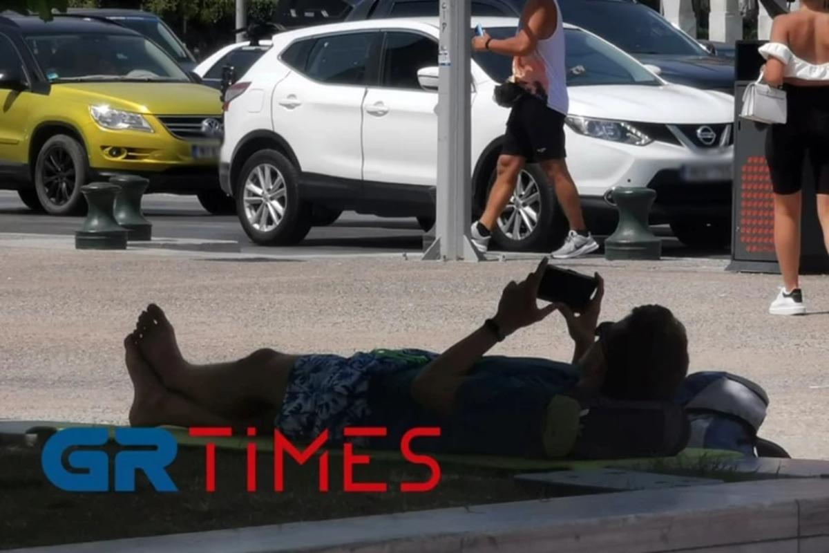Η Νέα Παραλία, όπως αναφέρει και δείχνει σε σχετικό βίντεο και η ιστοσελίδα grtimes.gr, είναι τελείως άδεια ενώ τα θερμόμετρα δείχνουν 36 βαθμούς υπό σκιά και ο κόσμος ξαπλώνει όπου βρίσκει πράσινο, κάνει αέρα με βεντάλιες και αποφεύγει τον ήλιο.