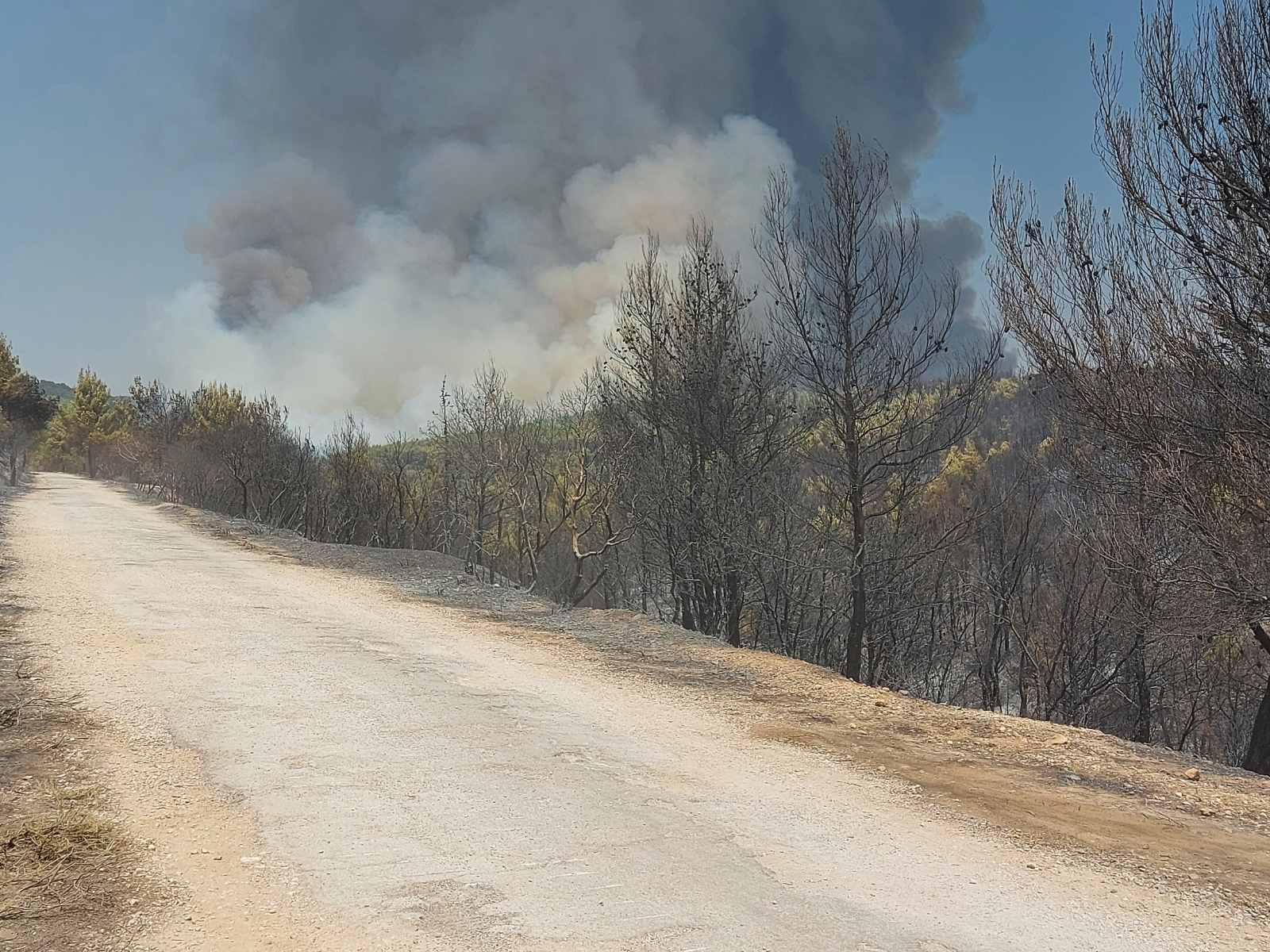 Ακολούθησε δεύτερο μήνυμα από το 112 προς τους κατοίκους του Κρυονερίου να κλείσουν καμινάδες, παράθυρα και πόρτες για να μην μπουν καύτρες στα σπίτια τους. Η δεύτερη αναζωπύρωση είναι μέσα στα πρώην βασιλικά κτήματα και η τρίτη στο ρέμα της Χελιδονούς κοντά στις Αδάμες.