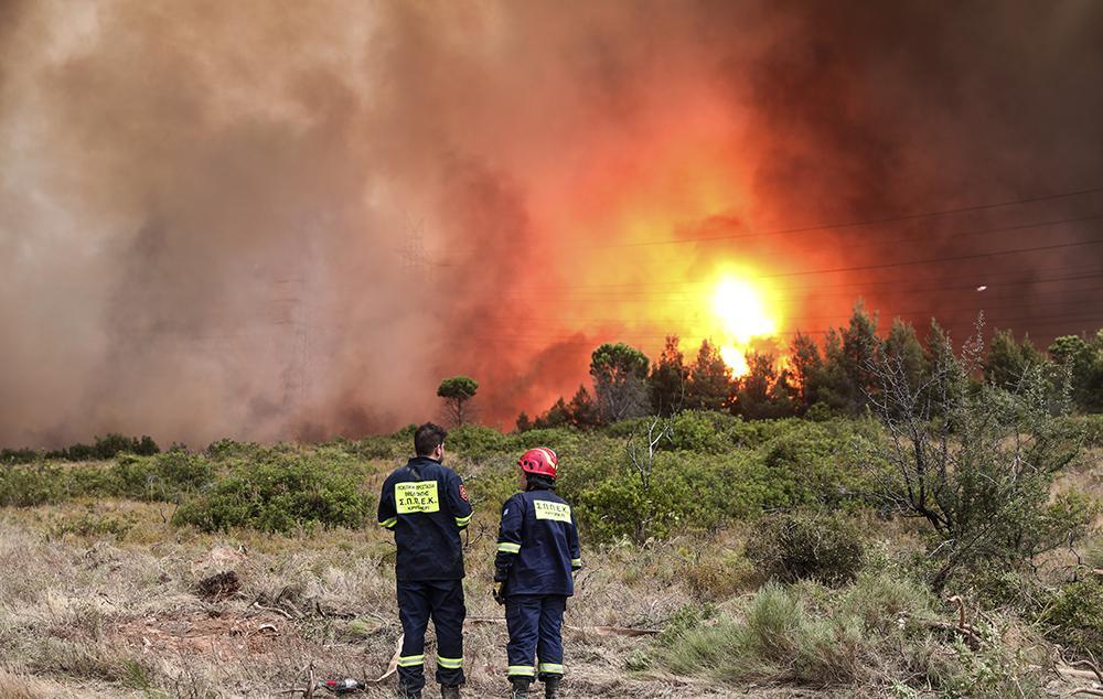 Για το λόγο αυτό όλα τα εναέρια μέσα και οι επίγειες δυνάμεις καταπολεμούν τις μεγάλες εστίες σε όλη την περίμετρο.