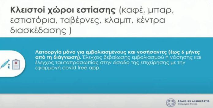 Η λειτουργία στην εστίαση θα γίνεται πλέον μόνο με εμβολιασμένους ή με νοσήσαντες που έχουν πιστοποιητικό νόσησης έξι μηνών από τη διάγνωση.