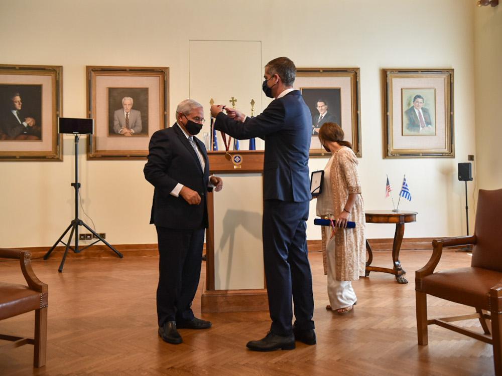 Ο Δήμαρχος Αθηναίων απευθυνόμενος προς τον κ. Μενέντεζ είπε ότι είναι ένας συνεπής και αποτελεσματικός φίλος της Ελλάδας και της Κύπρου, γεγονός που αποδεικνύεται εμπράκτως. «Αποδεικνύεται, μεταξύ των άλλων, με την νομοθετική σας πρωτοβουλία EastMed που δημιουργήσατε ένα νέο υπόδειγμα για την προώθηση και ενίσχυση της στρατηγικής συνεργασίας μεταξύ των δύο μας χωρών αναγνωρίζοντας την αξία της Ελλάδας ως πυλώνα σταθερότητας και ασφάλειας στην ευρύτερη περιοχή”, είπε χαρακτηριστικά ο κ. Μπακογιάννης και συνέχισε λέγοντας “δείξατε επίσης την ευαισθησία σας, συγκινώντας τον ελληνικό λαό, με την πρόσφατη έκκλησή σας στο αμερικανικό πεντάγωνο να συνδράμει στην κατάσβεση των πυρκαγιών που έπληξαν την πατρίδα μας. Ασφαλώς, βέβαια, θα συμφωνήσετε πως όλα αυτά οφείλονται στην αυτοδιοικητική σας εμπειρία.»