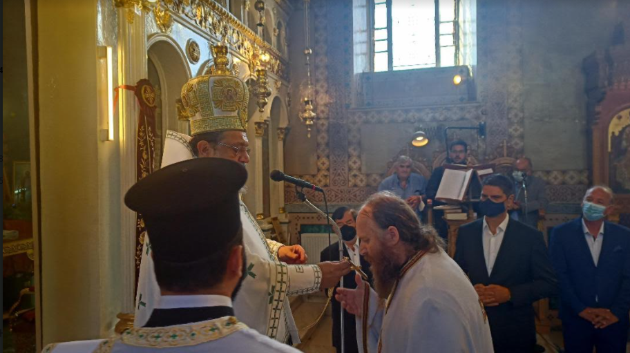 Προ του πέρατος της Θείας Λειτουργίας, ο Σεβασμιώτατος, τιμώντας την διακονία και ιερατική πορεία του π. Δημητρίου του απένειμε το οφφίκιο του Πρωτοπρεσβυτέρου.