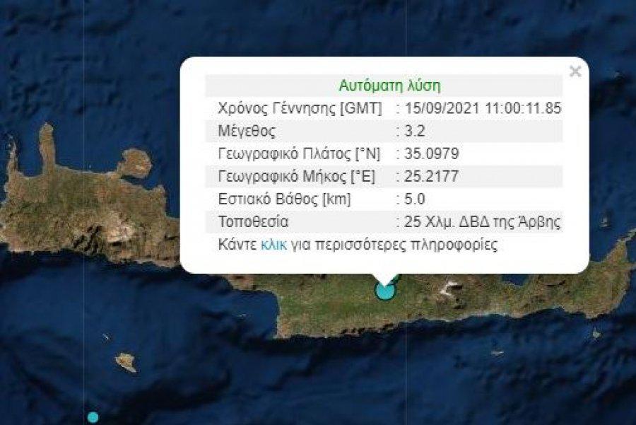 Σύμφωνα με το Γεωδυναμικό Ινστιτούτο ο σεισμός είχε εστιακό βάθος μόλις 5χλμ. και μέγεθος 3,2 Ρίχτερ και είχε επίκεντρο 25χλμ δυτικά-βορειοδυτικά του χωριού της Άρβης.