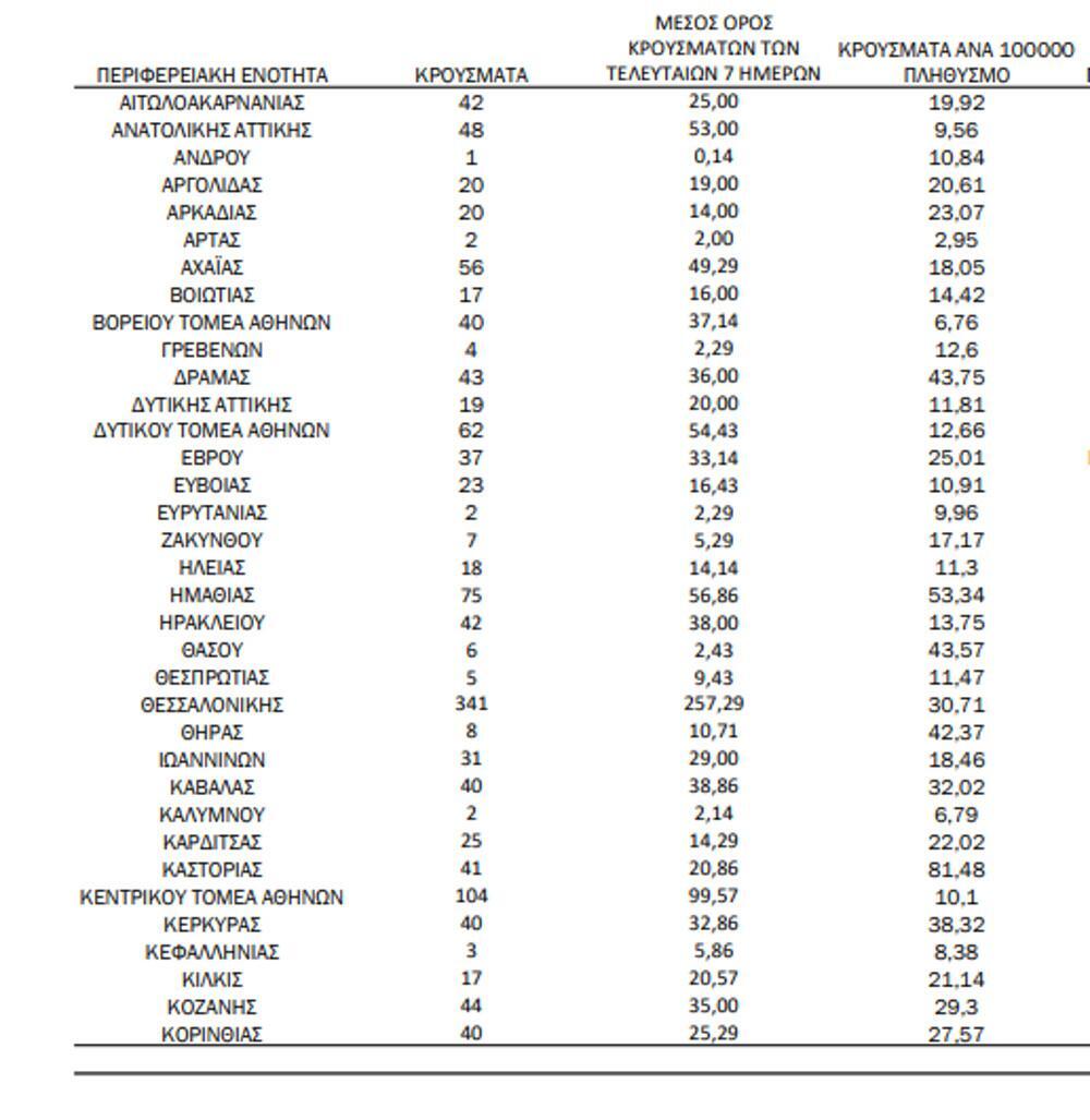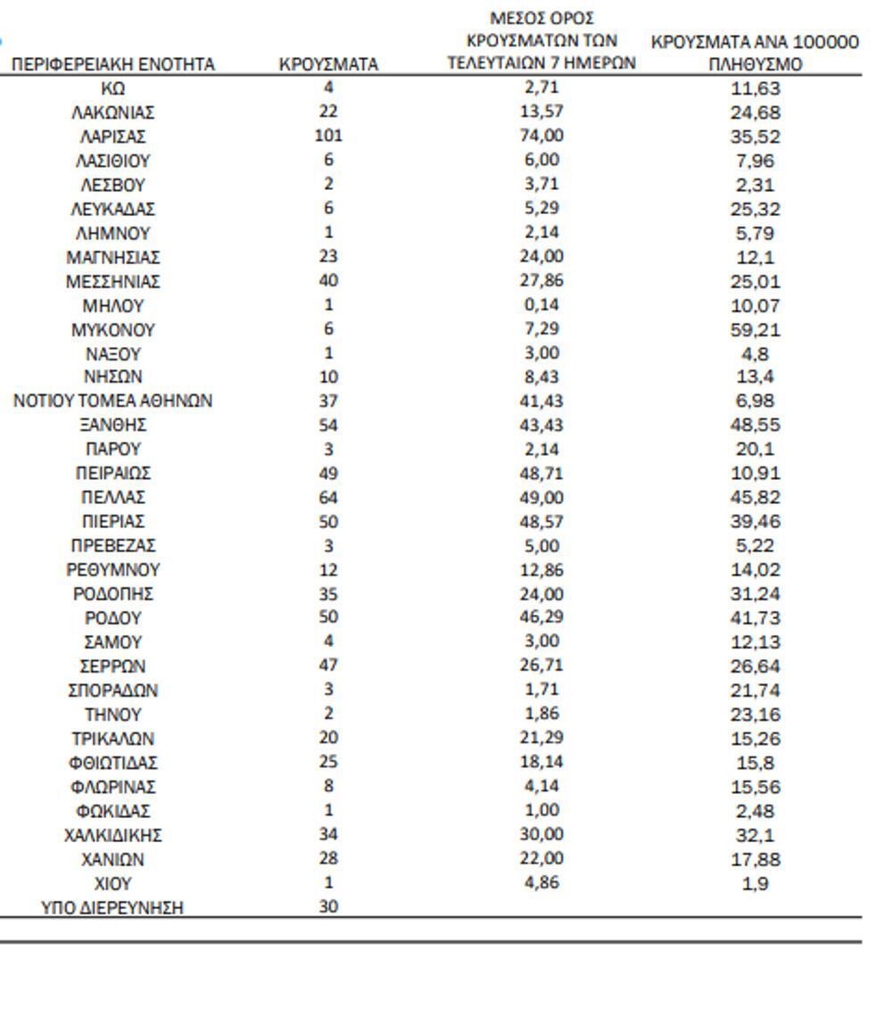 Αναλυτικά, η γεωγραφική κατανομή των χθεσινών κρουσμάτων: