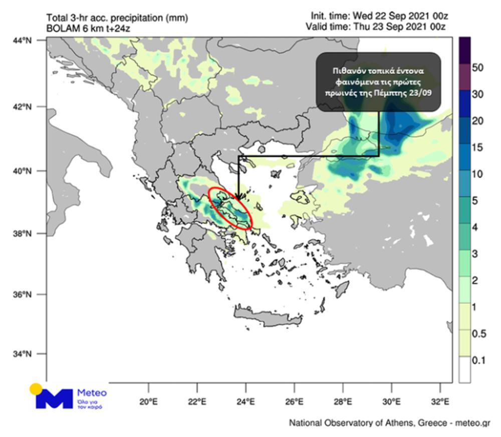 Τα φαινόμενα ενδέχεται να είναι κατά τόπους έντονα σε Ανατολική Θεσσαλία και Βορειοανατολική Στερεά, ενώ ιδιαίτερη προσοχή απαιτείται στις πυρόπληκτες περιοχές της Βόρειας Εύβοιας.