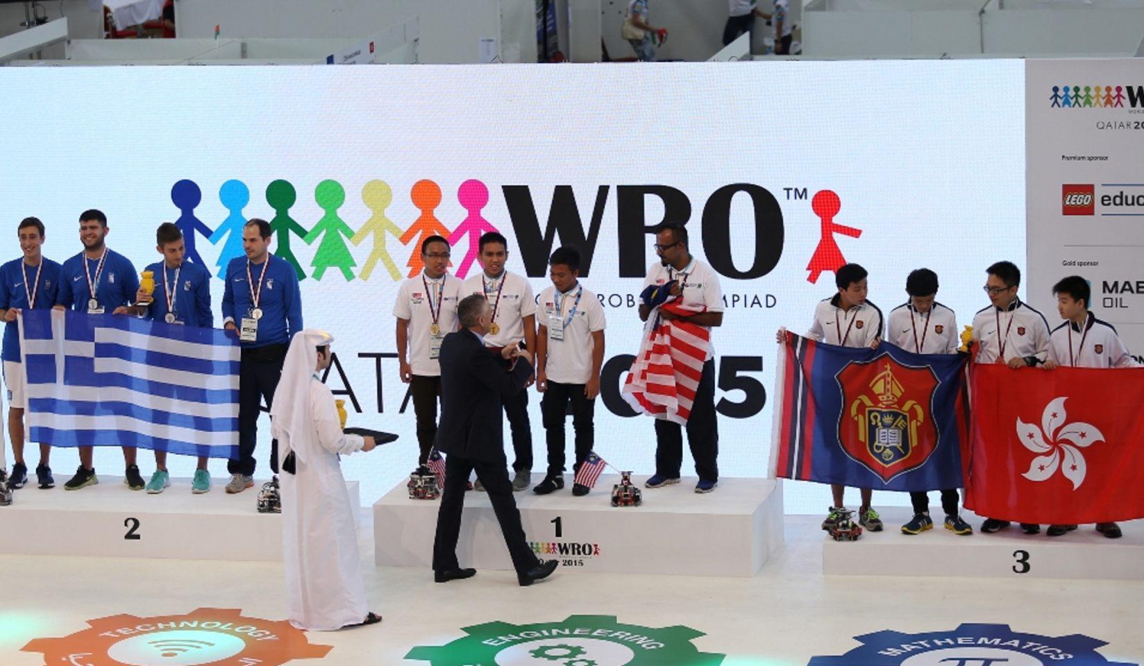 Ελληνική Ομάδα βρίσκεται στο βάθρο των νικητών κατά την Ολυμπιάδα Εκπαιδευτικής Ρομποτικής το 2015