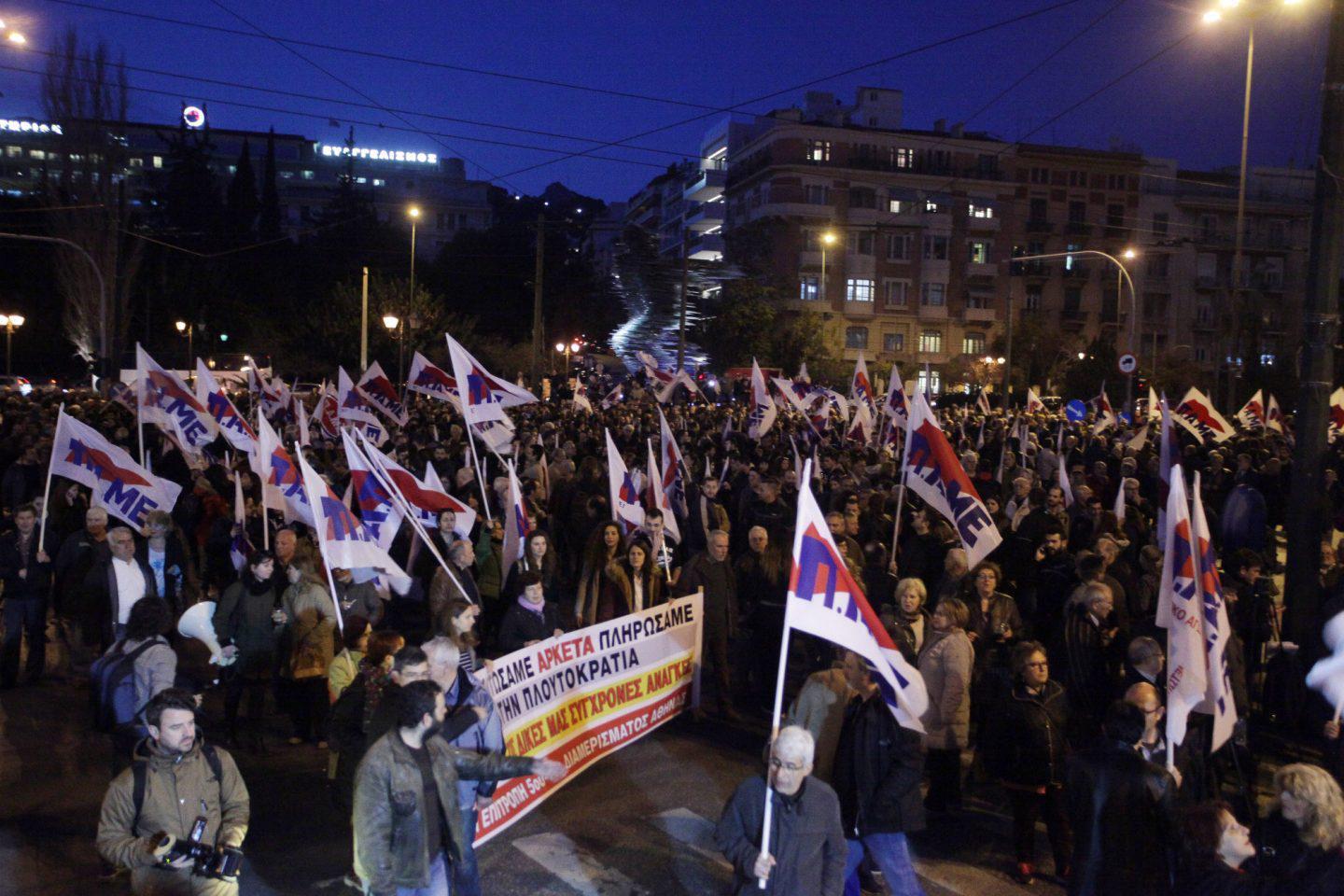 Η διασταύρωση των οδών Β. Σοφίας και Κωνσταντίνου έκλεισε από τους χιλιάδες κόσμου. Στο κεντρικό πανό του ΠΑΜΕ αναγραφόταν: «ΕΕ – ΔΝΤ – ΣΕΒ, ματώνουν τις ζωές μας. Οργάνωση και αγώνας η απάντησή μας».