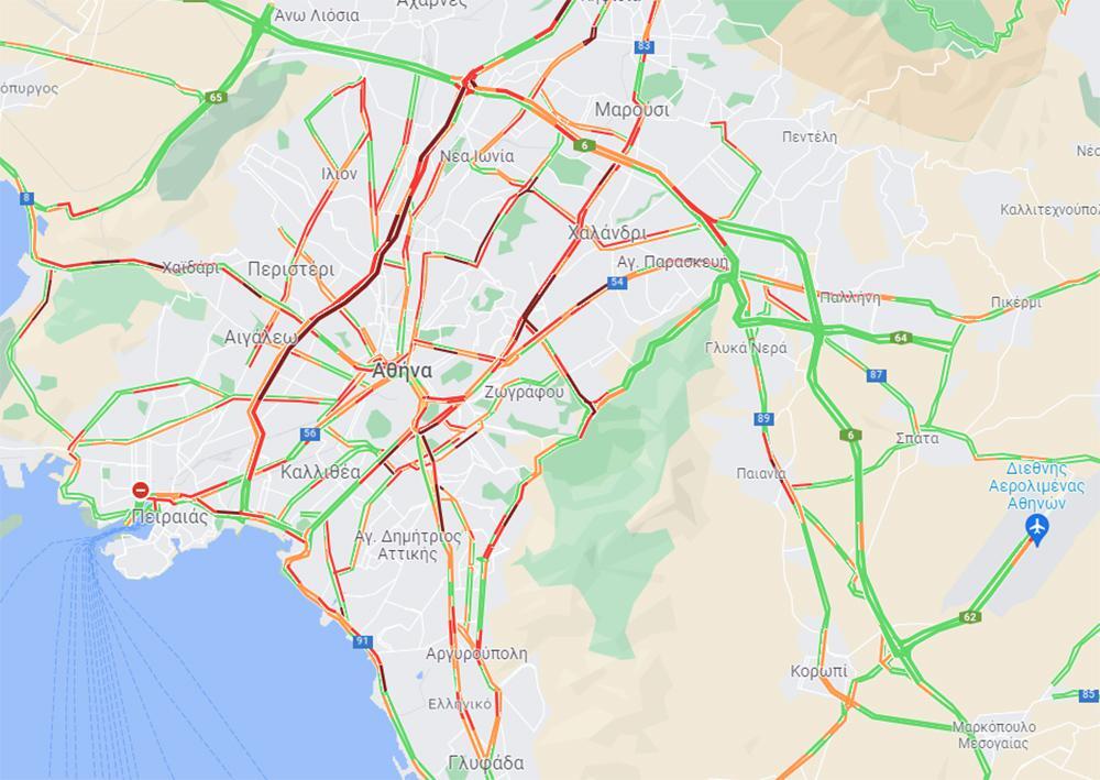 Προβλήματα υπάρχουν και στη Βασ. Σοφίας, στη Λεωφόρο Κηφισίας, στην Αττική Οδό αλλά και στο κέντρο του Πειραιά.