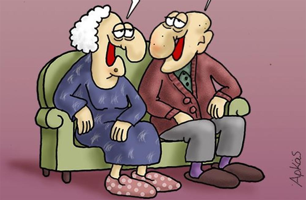 «Σε μισώ», λέει η γυναίκα και ο άνδρας απαντά και «εγώ σε μισώ» και συνεχίζει η γυναίκα «δεν είναι υπέροχο που μετά από 65 χρόνια γάμου νιώθουμε όπως τον πρώτο καιρό;».