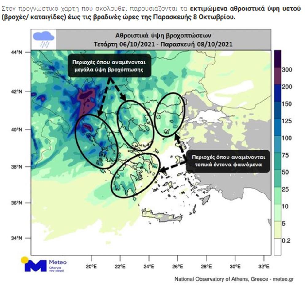 Ειδικότερα, όπως προκύπτει από τα προγνωστικά του στοιχεία, ατμοσφαιρική διαταραχή στην ευρύτερη περιοχή της Ιταλίας αναμένεται να σχηματίσει βαρομετρικό χαμηλό το οποίο κινούμενο αργά ανατολικά θα επηρεάσει τη χώρα μας με ισχυρά κατά τόπους φαινόμενα από τις μεσημεριανές ώρες της Τετάρτης 6 Οκτωβρίου έως και το τέλος της εβδομάδας.