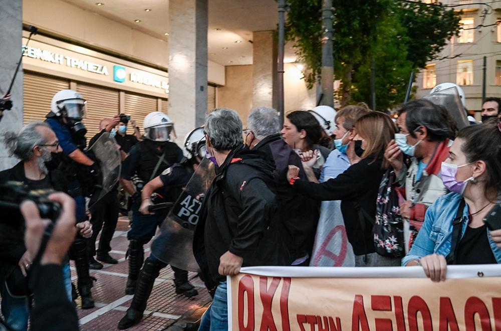 Όταν οι διαδηλωτές έφτασαν στη διασταύρωση των οδών Σταδίου και Καραγιώργη Σερβίας οι αστυνομικές δυνάμεις τους απώθησαν με τη χρήση χημικών προκειμένου να δοθεί στην κυκλοφορία το ένα ρεύμα της Σταδίου. Τραυματίστηκε ελαφρά ένας διαδηλωτής.