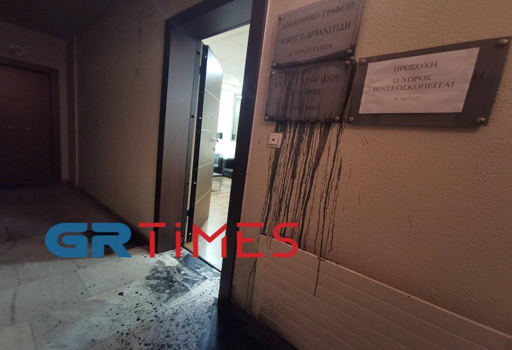 Τα άτομα εισήλθαν στο κτήριο που βρίσκεται στο κέντρο της πόλης και μόλις έφτασαν έξω από το γραφείο πέταξαν μαύρη μπογιά, τόσο στην πόρτα, όσο και στην πινακίδα που αναγράφει το όνομα και τη δικηγορική ιδιότητα της κα. Ευθυμίου.