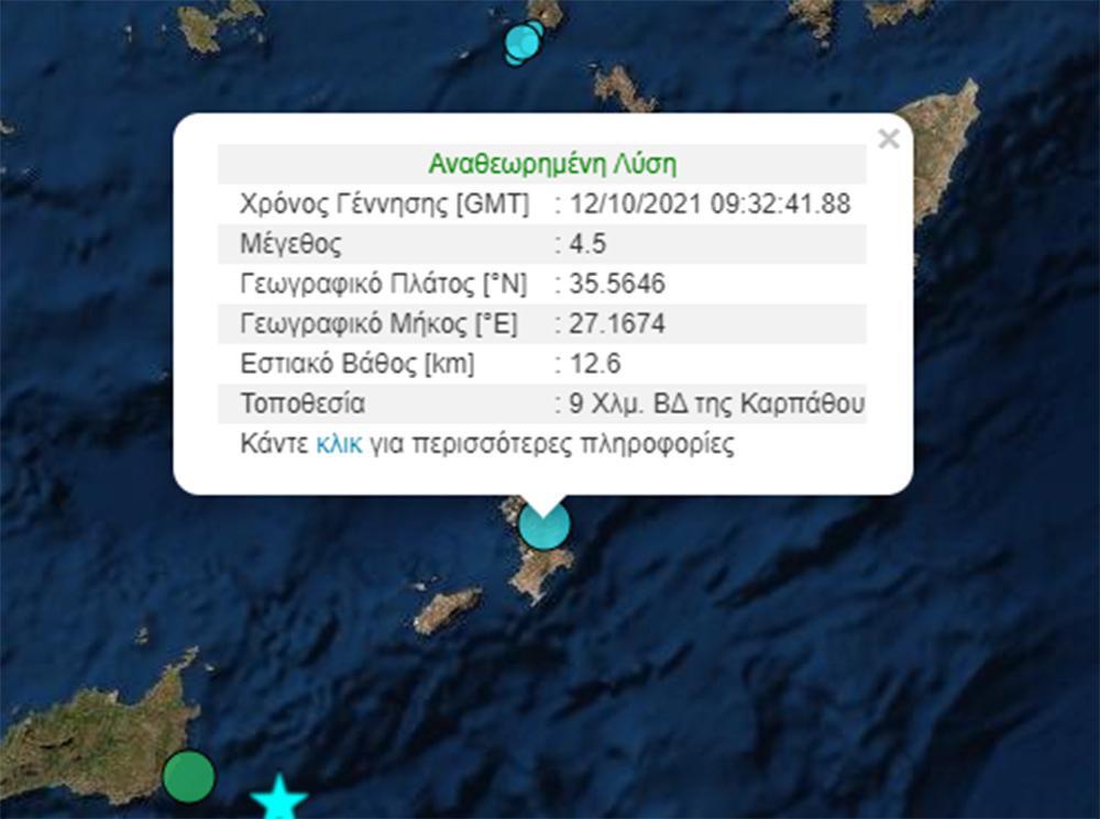Επίσης, στις 12:36 σημειώθηκε μετασεισμός 4 Ρίχτερ από τον μεγάλο σεισμό ανατολικά της Ζάκρου.