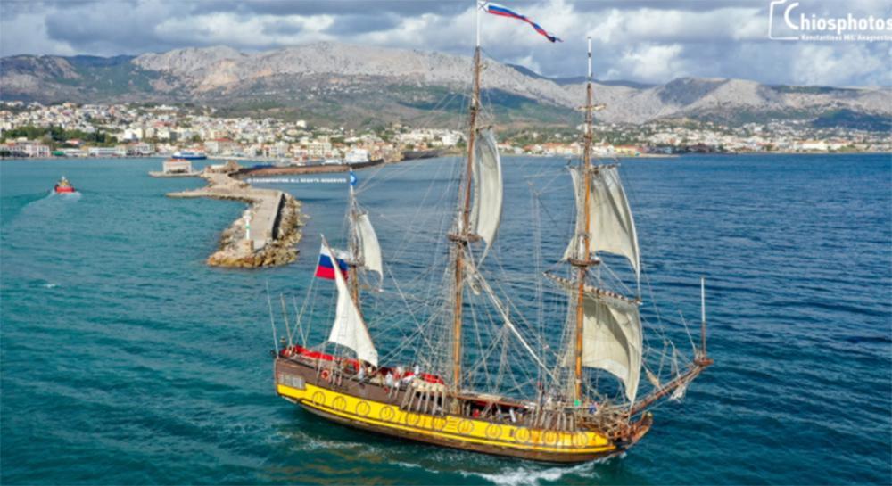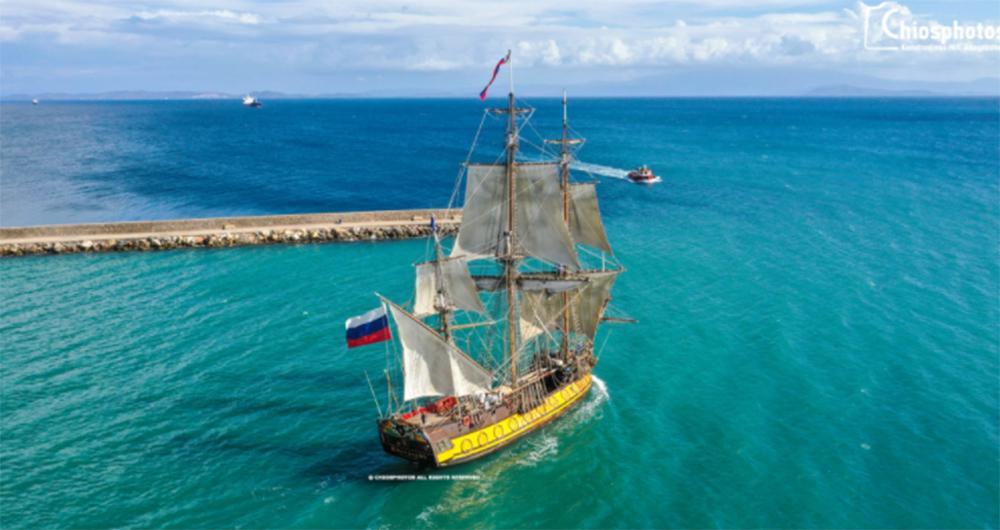 Το αντίγραφο της φρεγάτας κατασκευάστηκε το 1999 και έκτοτε ταξιδεύει στις θάλασσες ως εκπαιδευτικό πλοίο. Το ρωσικό ιστιοφόρο ξεκίνησε τη διεθνή ιστορικο-εκπαιδευτική του αποστολή στο Αιγαίο με την ονομασία «Φλόγα του Τσεσμέ» το Σάββατο, 9 Οκτωβρίου.
