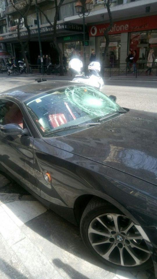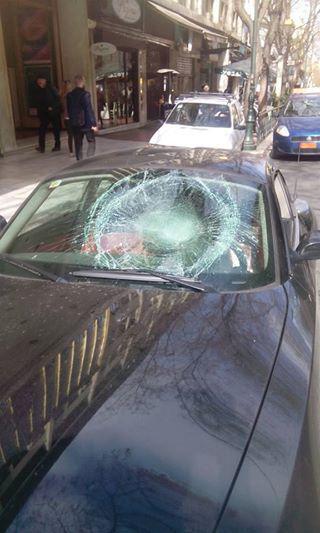 Την ώρα που με τον συνοδηγό μου ήμασταν έτοιμοι να ξεκινήσουμε, ένα νεαρό άτομο ανέβηκε στο καπό του αυτοκινήτου μου, έσπασε με μία κλωτσιά το παρμπρίζ και έφυγε τρέχοντας από την Μαυρομιχάλη και χάθηκε στα Εξάρχεια.