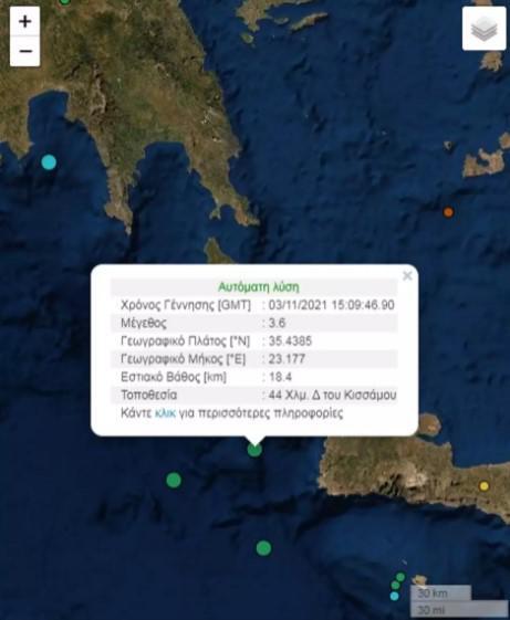 Ο σεισμός έχει μέγεθος 3,6 βαθμούς της κλίμακας Ρίχτερ, όπως κατέγραψε η αυτόματη λύση του Γεωδυναμικού Ινστιτούτου.