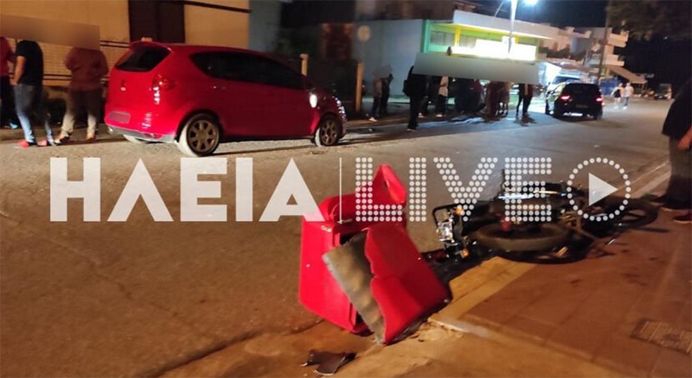 Ο οδηγός του δίκυκλου τραυματίστηκε στο κεφάλι και στα πόδια και διακομίστηκε στο Γενικό Νοσοκομείο Αμαλιάδας.