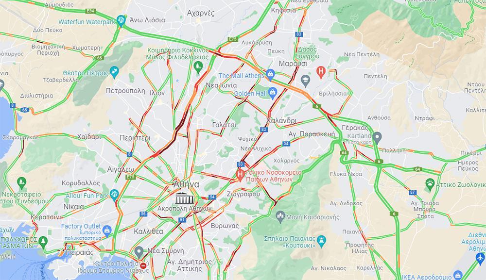 Αργά κινούνται τα οχήματα στην Αρδηττού, ενώ προβλήματα υπάρχουν στους δρόμους του Νέου Κόσμου και της Ηλιούπολης.