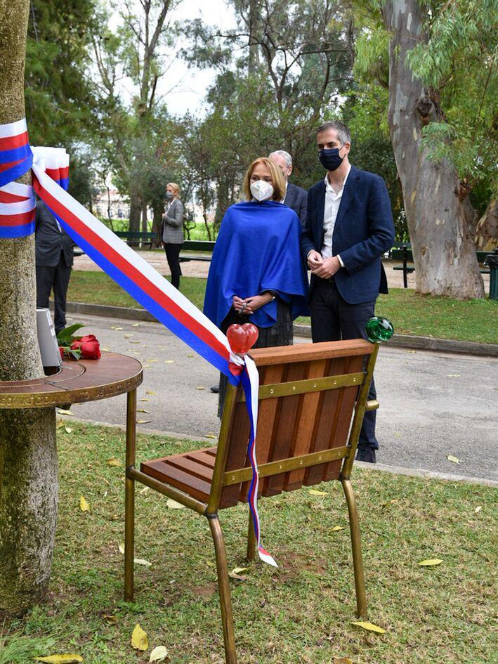 Σε μία σύντομη, αλλά συγκινητική ομιλία η κ. Χάβλοβα, Πρόεδρος του Ιδρύματος Ντάγκμαρ και Βάτσλαβ Χάβελ, τόνισε τη χαρά της που επισκέφθηκε την Αθήνα για τα εγκαίνια του έργου, και ανέφερε: “Ο σύζυγός μου “έτρεφε” μεγάλο σεβασμό για τη διεθνή κοινότητα και έβλεπε τις σχέσεις μεταξύ των χωρών ως απαραίτητο μέσο για την υποστήριξη των αξιών για τις οποίες ζούσε και αγωνιζόταν. Το “παγκάκι του Χάβελ” σχεδιάστηκε ακριβώς για να τιμήσει την κληρονομιά του. Προσκαλεί τους ανθρώπους να καθίσουν, να προβληματιστούν, να συζητήσουν ακούγοντας ο ένας τον άλλον, να ανταλλάξουν απόψεις και να αναζητήσουν μαζί τις απαντήσεις”. Η ίδια συμπλήρωσε: “Είμαι υπερήφανη που η πόλη της Αθήνας και ολόκληρη η Ελλάδα επιβεβαιώνουν για ακόμη μία φορά την προσήλωσή τους σε αυτές τις αξίες. Εύχομαι αυτός ο τόπος να εξυπηρετήσει σωστά τον σκοπό του, έτσι ώστε οι πολίτες κάθε γενιάς και οι επισκέπτες της Αθήνας να βρουν μια στιγμή σε αυτό το σημείο για να κάνουν μια παύση και να αναλογιστούν τους υψηλότερους στόχους και τις αξίες -εκείνες που αντέχουν περισσότερο στον χρόνο από την ατομική και ανθρώπινη ύπαρξη. Επιτρέψτε μου να θυμίσω τα λόγια του Χάβελ: “Μια προσωπική ζωή χωρίς ιστορικό ορίζοντα είναι καθαρή μυθοπλασία, μια απάτη και εν τέλει ένα ψέμα”.