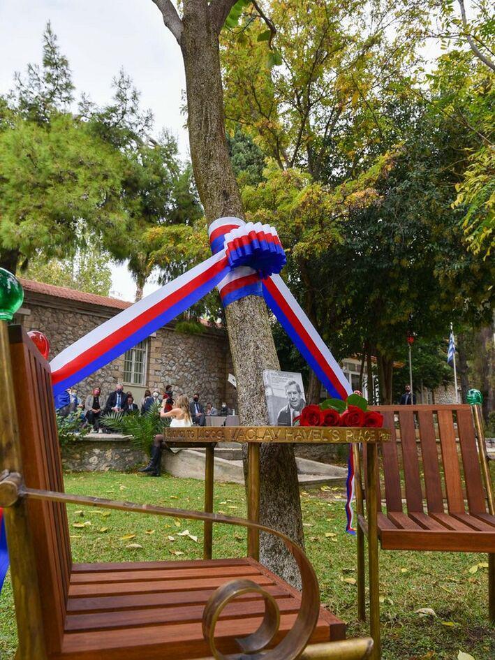 Το “παγκάκι του Βάτσλαβ Χάβελ”, το οποίο αποτελείται από ένα τραπέζι ανάμεσα σε κορμό δέντρου και δύο καρέκλες, δημιουργήθηκε από τον Τσέχο αρχιτέκτονα με έναν συμβολικό σκοπό: Να τονίσει τη σημασία τού να καθόμαστε στο ίδιο τραπέζι και να συζητάμε παρά τις όποιες διαφορές. Στην Αθήνα, τοποθετήθηκε σε ένα συμβολικό σημείο της πόλης, το Πάρκο Ελευθερίας.