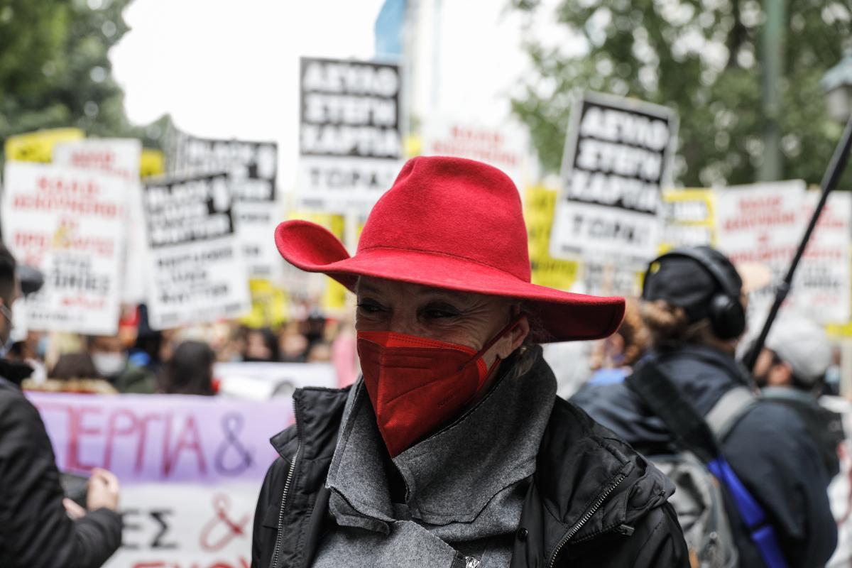 Φορώντας το χαρακτηριστικό κόκκινο καπέλο της η Ολλανδή δημοσιογράφος Ίνγκεμποργκ Μπέουχελ λίγο πριν φύγει από την Ελλάδα την οποία όπως τόνισε αποφάσισε να εγκαταλείψει, συμμετείχε στην πορεία για τη συμπλήρωση 48 χρόνων από την εξέγερση της 17ης Νοέμβρη του 1973.