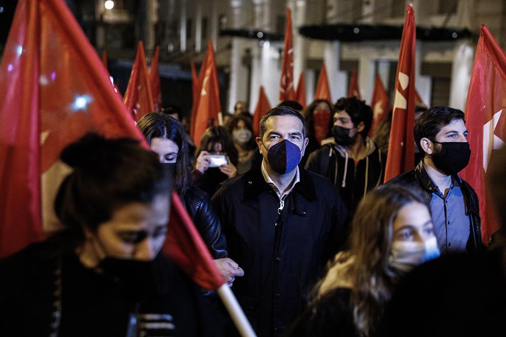 Ο Τσίπρας στην πορεία του Πολυτεχνείου ως επικεφαλής του μπλοκ του ΣΥΡΙΖΑ