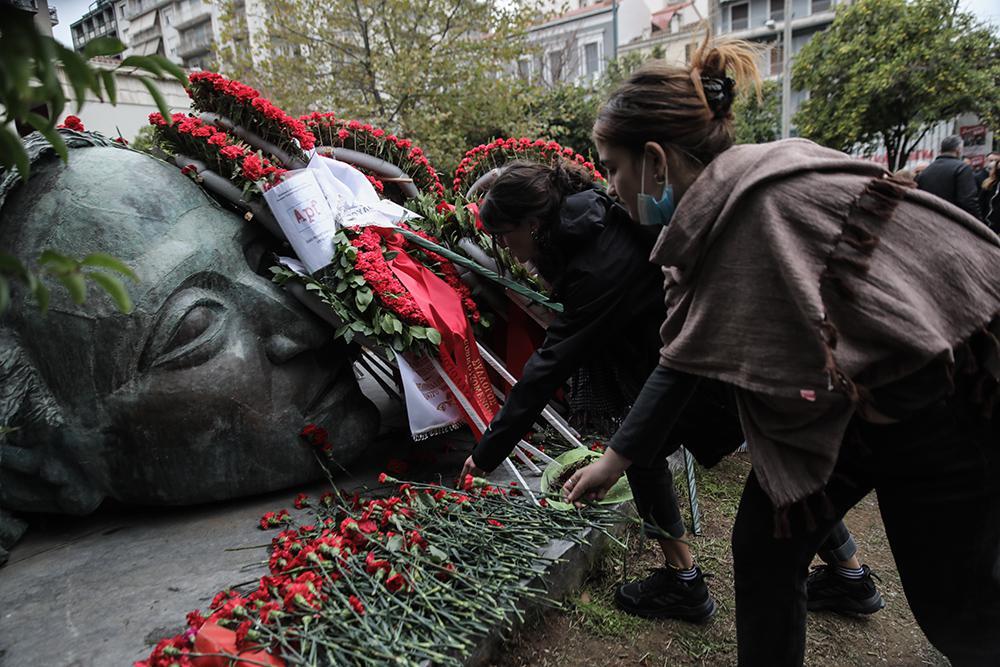 «Κινητοποιήσεις», όπως τονίζει, «που αντικειμενικά ορίζονται και από τον σημερινό αγώνα για την ενίσχυση του ΕΣΥ και στήριξης του ηρωικού αγώνα των υγειονομικών μας. Το Πολυτεχνείο ζει στους αγώνες τού σήμερα για δημοκρατία και δικαιοσύνη. Στους αγώνες για την κατοχύρωση των σύγχρονων κοινωνικών δικαιωμάτων. Στους αγώνες για μια ζωή με Ψωμί, Παιδεία και Ελευθερία!».