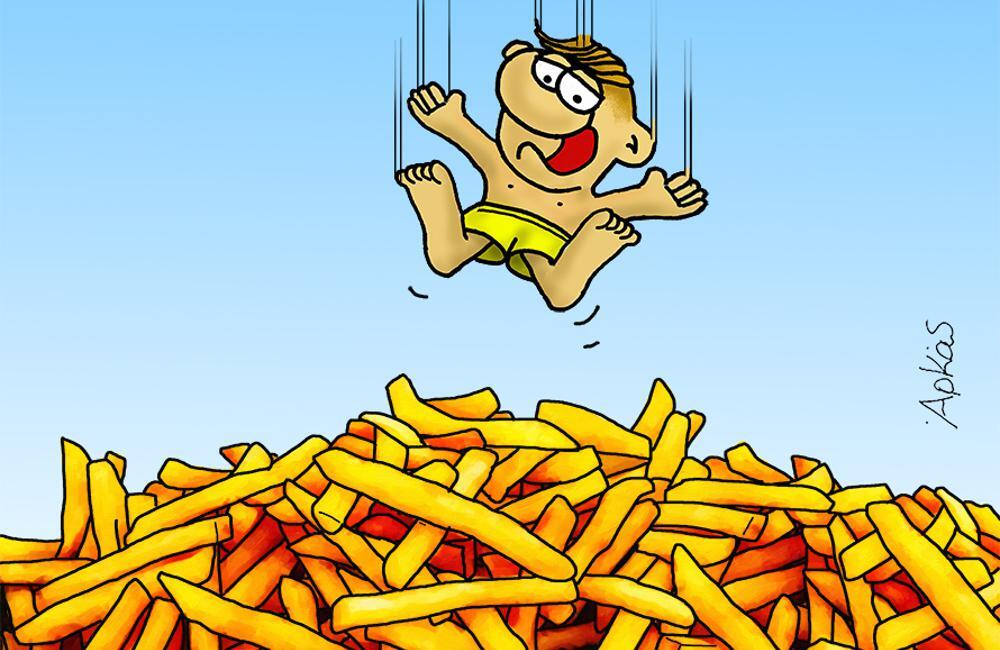 Ο γνωστός σκιτσογράφος Αρκάς έχει ως πρωταγωνιστεί στο νέο του σκίτσο τον Θανασάκη και τις αγαπημένες του τηγανιτές πατάτες.. Ο Αρκας μας εύχεται καλό Σαββατοκύριακο και καλά μπάνια στους χειμερινούς κολυμβητές με τον Θανασάκη να είναι έτοιμος για βουτιά σε ένα «βουνό» με τηγανιτές πατάτες.