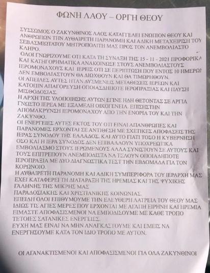 Μάλιστα, χαρακτηρίζουν την απόφαση του Μητροπολίτη τους για τους ανεμβολίαστους ιερείς «σατανική»